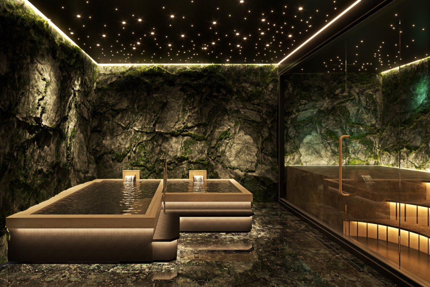 「KUDOCHI onsen 六本木温泉店」は、全室に本格的な温泉、水風呂、そして広々としたサウナを完備。まるで洞窟のような幻想的な空間で、自分だけの時間を満喫できます。季節ごとに異なる名湯が引かれているため、何度訪れても新鮮な体験が味わえます。
