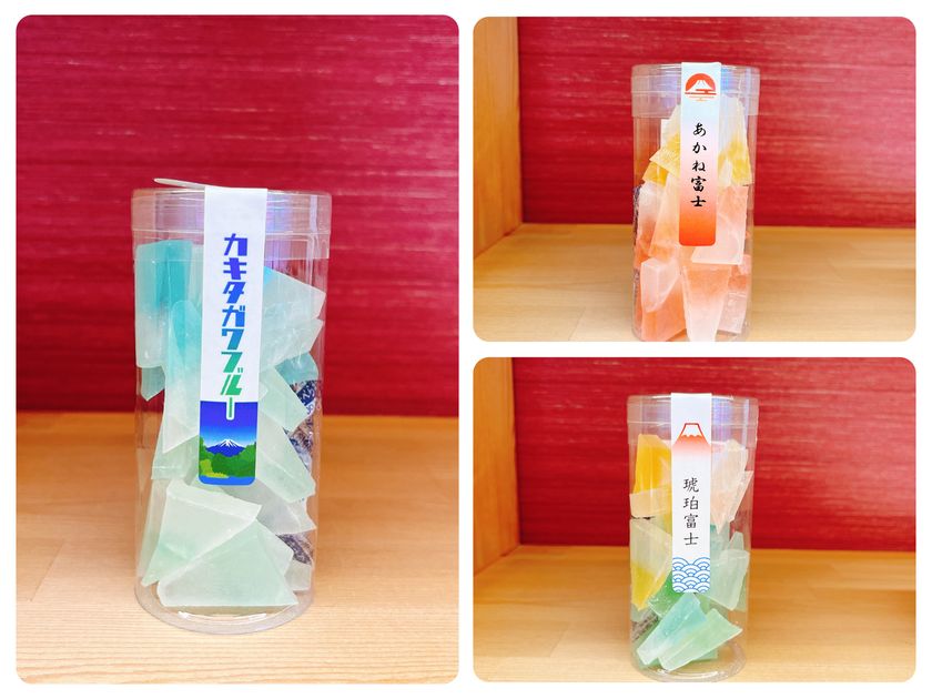 目で楽しむことができ、味で故郷を知らせることができる、新しい清水町名物。高校生からの声を具現化して開発した商品が、伊豆河童の新商品・琥珀糖3種『カキタガワブルー』『琥珀富士』『あかね富士』です。