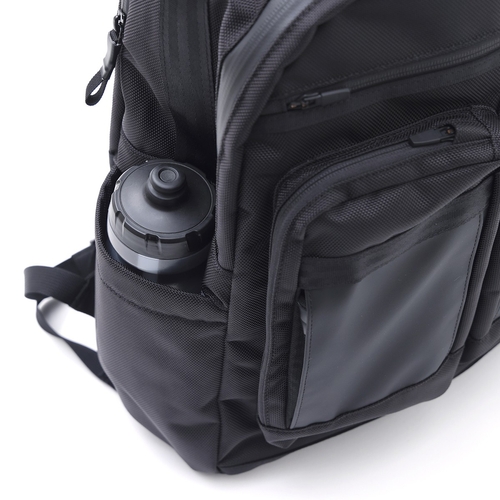 水深1mに沈めても浸水しないFIDLOCK社のHARMETIC超完全防水ポケットを内蔵し、絶対に濡らしたくないものを収納できたり、びしょびしょに濡れた傘や結露で汗をかいたボトルをいれられるバケツ型サイドボトルポケットなどを装備するなど機能性が満載。