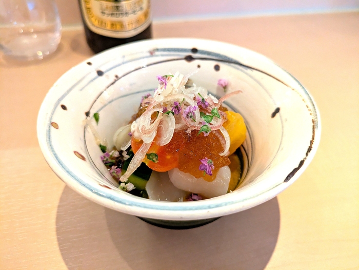 料理は、店主の経験を活かした和洋折衷の創作メニュー。定番のおつまみにもひと工夫を加え、日本酒と合わせたときに一層旨みが引き立つよう仕上げています。イタリアンの技法を取り入れた小皿料理や、居酒屋ならではの気取らない一品など、ここでしか味わえない組み合わせが楽しめます。