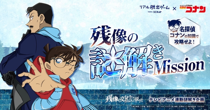 全世界で累計1,490万人以上を動員しているリアル脱出ゲームを企画制作する株式会社SCRAP(本社:東京都渋谷区、代表:加藤隆生)は、テレビアニメ「名探偵コナン」とコラボレーションしたリアル脱出ゲームの最新作『残像の交信(シグナル)からの脱出』の特別企画として、テレビアニメの放送と連動した誰でも挑戦できる無料の謎解き企画「名探偵コナンの知識で攻略せよ! 残像の謎解きMission」を公開いたします。
