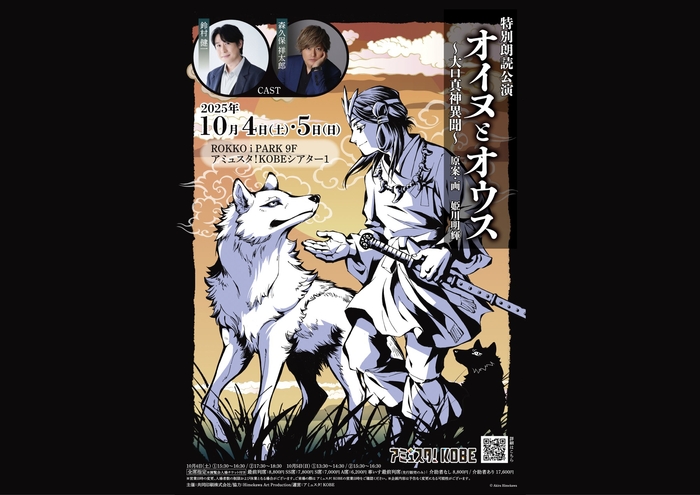 まんが家・姫川明輝(本田安桂美・長野勢都香のユニット)による108体の「狼」を描いた祈願絵を展示する「姫川明輝 四天神狼展 神戸-百八つの祈りと咆哮-」の開催を記念し、特別朗読公演「オイヌとオウス~大口真神異聞~」を上演いたします。