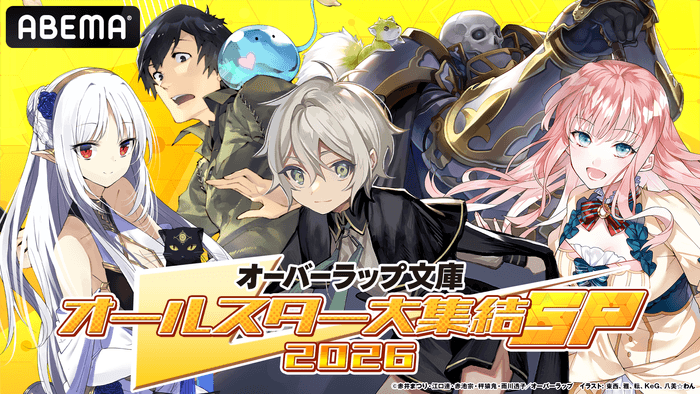 番組内では初解禁のアニメ化情報も発表予定となっており、オーバーラップ作品の最前線を知ることができるスペシャルプログラムとなってします。1月25日に発売となる、「第12回オーバーラップ文庫大賞」受賞4作品にもフォーカスします。さらに、スタジオゲスト陣が視聴者プレゼントをかけてゲームコーナーに挑戦予定となっており、最初から最後まで見逃せない内容です。1月11日の夜は、「ABEMA」生特番「オーバーラップ文庫オールスター大集結SP 2026 第1弾」に注目です。