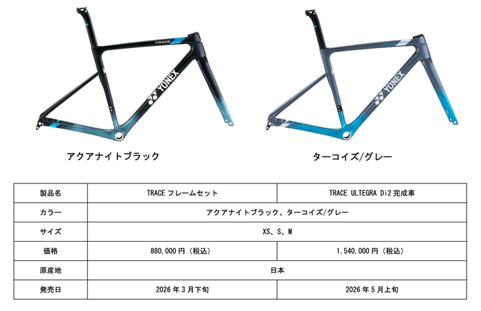 ヨネックス株式会社(代表取締役社長:アリサ ヨネヤマ)は、2014年の発売以来ご愛顧いただいているロードバイクより、エアロロードバイク「TRACE(トレース)」を2026年3月下旬に発売いたします。