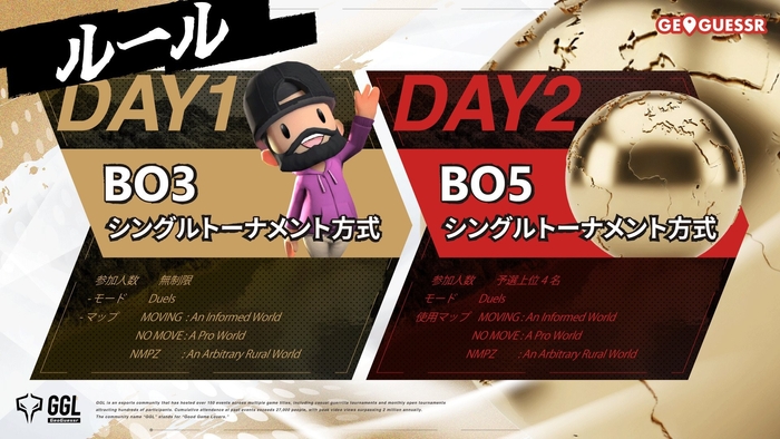 株式会社RATELとGGL運営委員会が主催・運営する、地理情報推測ゲーム『GeoGuessr(ジオゲッサー)』のコミュニティeスポーツ大会「GGL GeoGuessr」の本戦(DAY2)が、2026年3月6日(金)20時よりGGL公式YouTubeチャンネルにてライブ配信される。