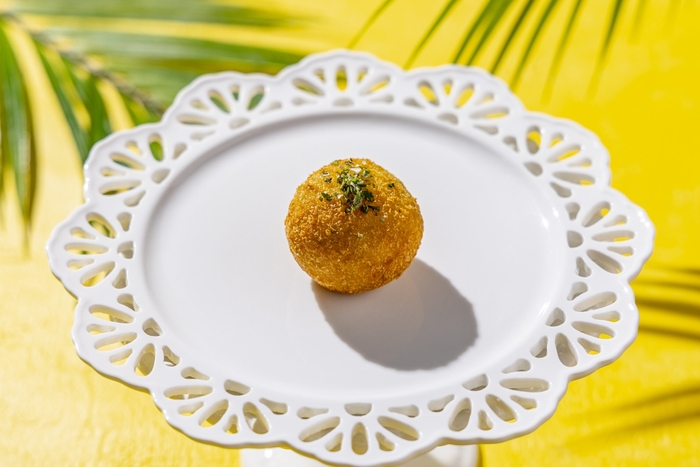 春の香りを感じるタケノコと、生のりの旨味をリゾットに閉じ込め、サクッと揚げたイタリア風揚げリゾット。磯の香りとタケノコのシャキシャキとした食感が楽しめます。