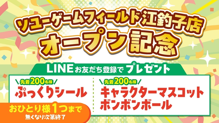 株式会社ソユー(本社:秋田県秋田市、代表取締役社長:今野秀一)は、岩手県北上市の江釣子ショッピングセンターパル イオンシネマ館1階に、岩手県内5店舗目となる「ソユーゲームフィールド江釣子店」をオープンいたします。